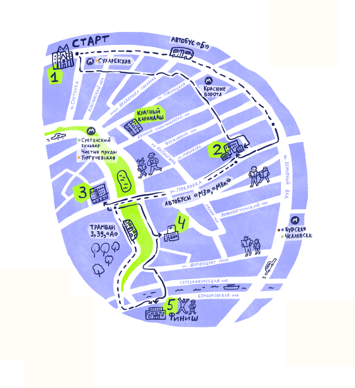 Сеансы каждые полчаса 17 июня с 16:00 до 18:00 или 18 июня с 11:00 до 16:00. Старт — книжный магазин «Поляндрия Letters». Финиш — Библиотека иностранной литературы.